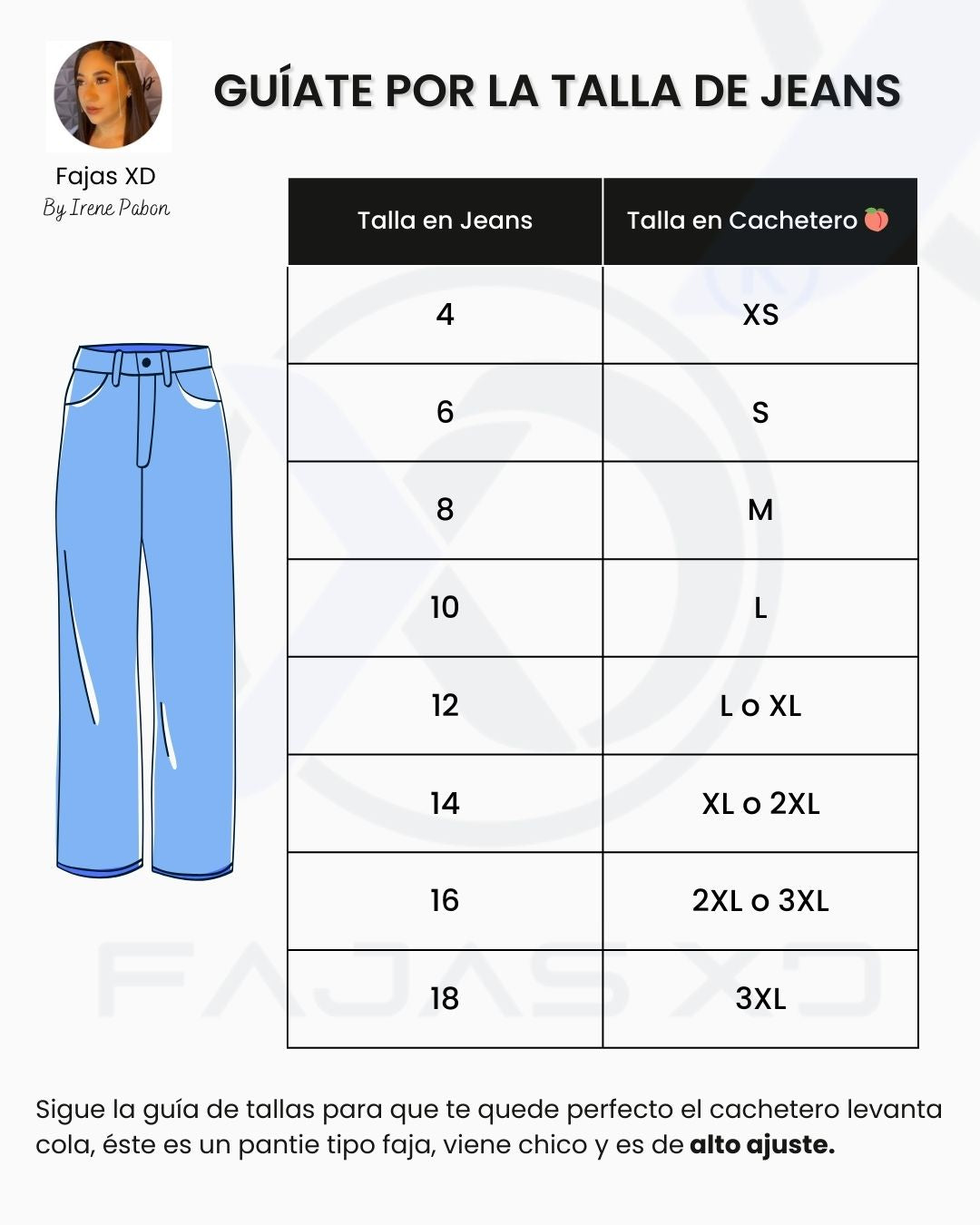 También puedes elegir la misma talla que usas en tus cacheteros, tangas o hilos.